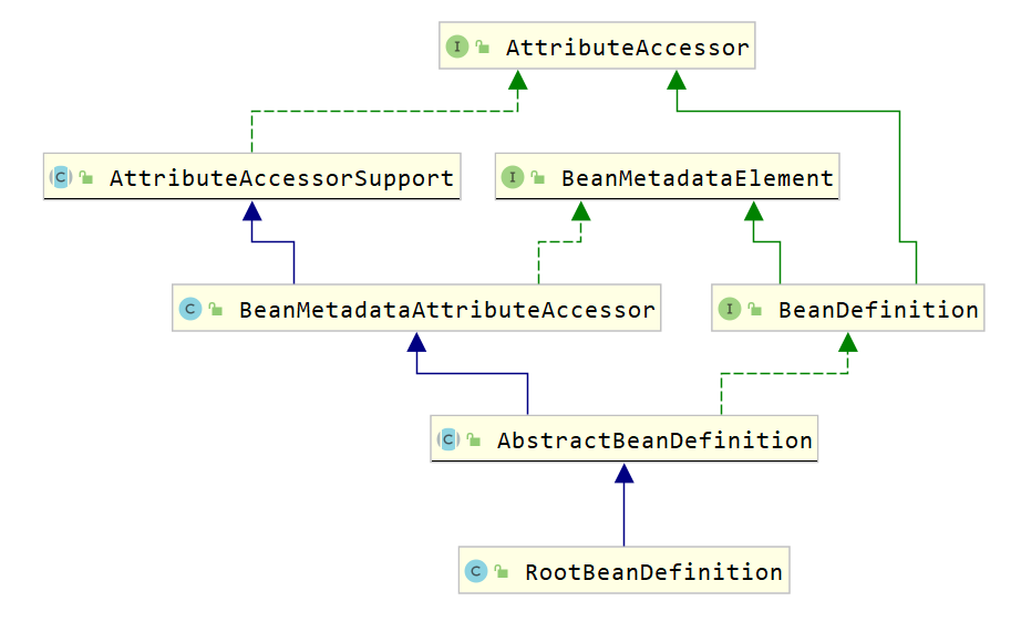 - 迭代器模式。对于 MutablePropertyValues 类定义使用到了迭代器模式,因为此类存储并管理 PropertyValue 对象,也属于一个容器,所以给该容器提供一个遍历方式。